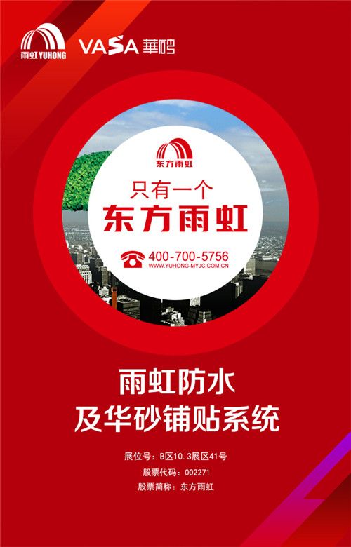 东方雨虹,专注防水行业20年,从每一寸卷材、每一米涂料的精益求精,发展到今天对防水及瓷砖安装一整套体系的践行,是全行业及广大消费者众望所归的结果。雨虹防水及瓷砖安装系统作为家装防水处理及瓷砖安装维护的系统性方案,以品质卓越的产品和量身定制的施工解决方案,来为客户创造持久安全的环境。莅临东方雨虹展位,参观家装厨卫系统、阳台专用系统、室内地暖系统、室内防潮系统及室内水(泳)池系统五大防水及瓷砖铺贴系统解决方案,裸眼3D体验馆将带给您“零距离”的体验,和我们一起来惊叹最先进的系统化解决方案是如何让生活变得美好绚烂。