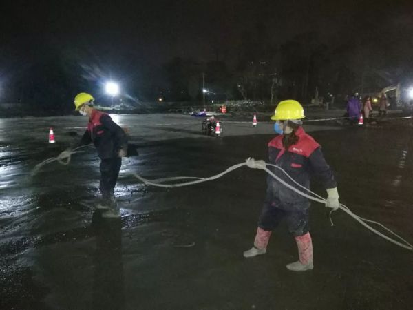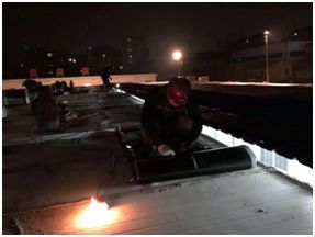 荆门东方雨虹在短短几个小时内将施工人员、防水材料、施工设备协调齐全到位并火速进入施工现场,连夜奋战,仅用一个晚上,保质保量完成施工任务。