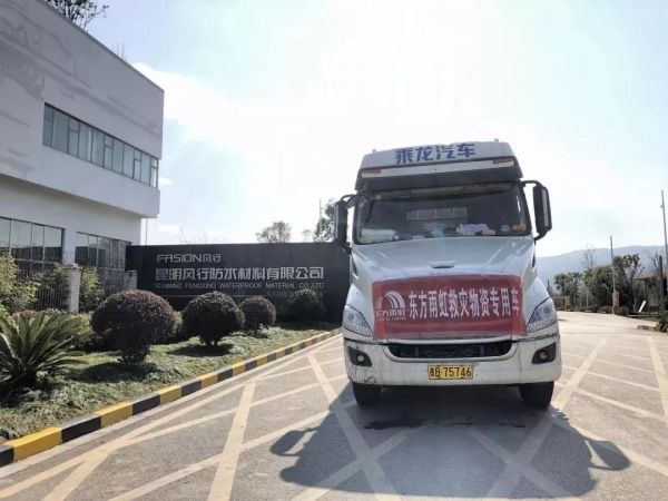2月4日,东方雨虹昆明风行防水材料有限公司紧急援助贵州省贵阳市公共卫生救治中心应急项目建设25吨防水材料。