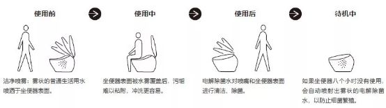 此外,长时间使用中,智能马桶盖“喷嘴”的清洁除菌也尤为重要。TOTO卫洗丽系列产品在每次都使用后,也会利用特有的“电解除菌水”功能,对喷嘴内外侧进行清洁,去除粘附在喷嘴上的污物和细菌。保持喷嘴内外洁净如一,让你安心使用。
