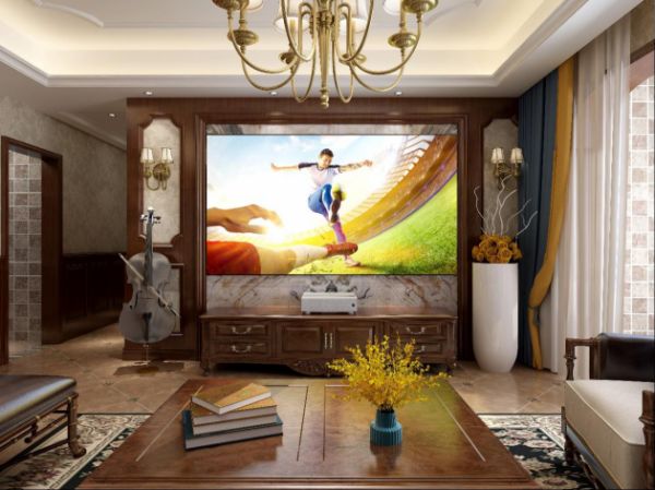 想象一下,忙碌一天,回到家里,客厅柔暖的黄色光亮起,一家人坐在地毯上,看100英寸甚至120英寸的巨幕电影,激光电视简洁美丽的身影静静地留在光影间,不打扰,但也不可或缺。