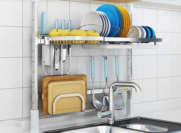 置物架是厨房里不可多得的收纳神器,这款厨房置物架是可以伸缩的置物架,在侧面是有可以调节的孔位距的,使用者可以根据自己厨房的实际情况调整高度。置物架可以直接摆放在台面上的,底座有乳胶防滑垫,这样能够增加摩擦力,哪里需要置物架就可以摆放在哪里了。