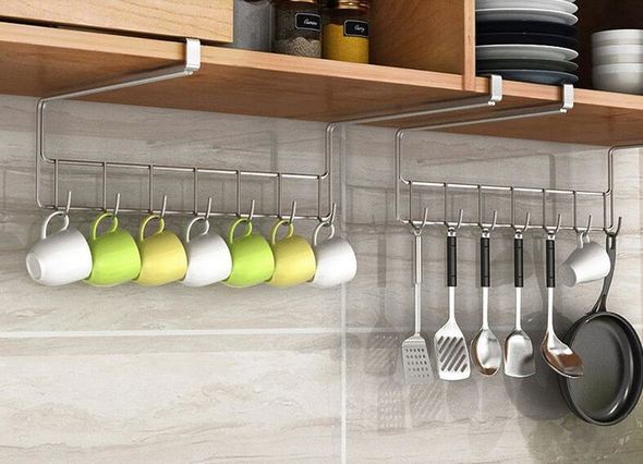 这款置物架是采用SUS304不锈钢打造的,材质安全可靠,非常适合在厨房使用。悬挂式的置物架,在使用的时候无需打孔,有着2.5mm厚度的卡槽,只需要将卡槽卡紧橱柜底部,就能够轻松打造一个处于半空中的置物架了,挂上酒杯、锅铲、杯子、保鲜袋、厨房纸巾简单方便。