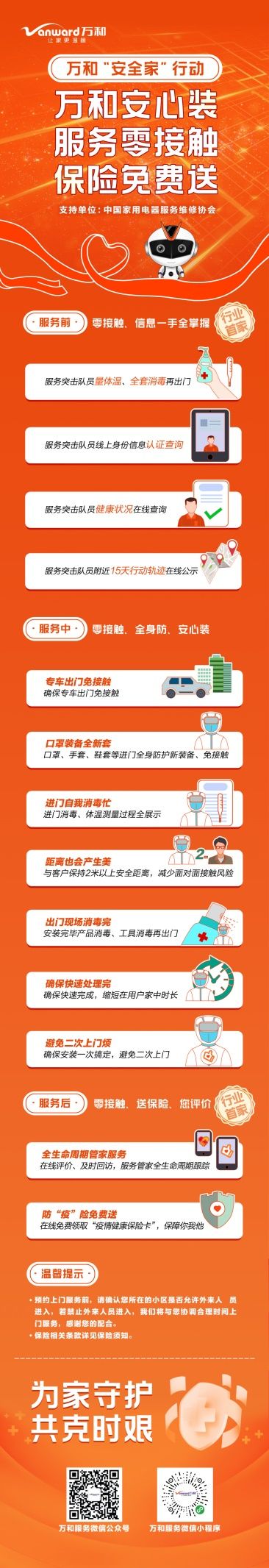 还有值得关注的是,万和此次还为“安心装”的用户提供与保险公司合作的健康防“疫”保险,同样为行业首家举措。用户服务完成后可在线免费领取电子保险卡。可谓“无死角” 的保障消费者安全,考虑之周到,属业内第一。