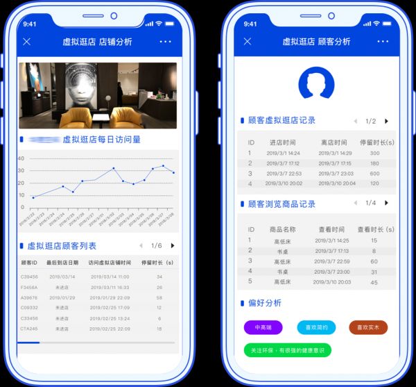 通过虚拟逛店微信小程序,店员能更方便更自然地和顾客建立交流关系,顾客也可自行扫码体验和传播。