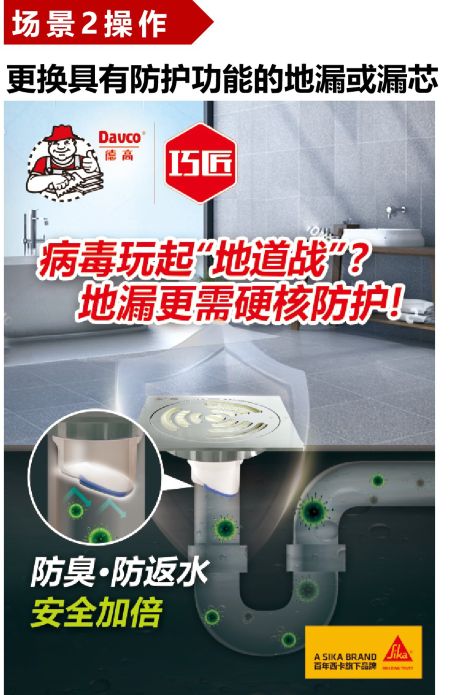 现在我们知道病毒竟然狡猾的会玩“地道战”,通过管道进行偷袭。淘大惨案血的教训告诫我们,居家防疫绝对不能松懈。家里的洗碗池、洗脸盆、浴缸、马桶、地漏等,都是与地下管道连接的重要关口,全面封堵下水道散播病毒的所有可能途径,每一位居家小能手都要提升“防护保卫”技能。