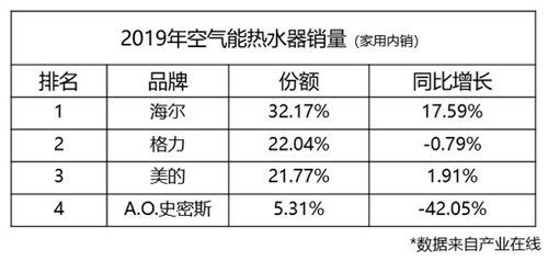 2019家用空气能竞争排位:涨跌不一,仅海尔2位数正增长!
