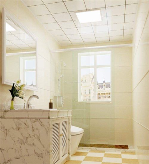 卫生间顶面如果受到水蒸气的影响,很容易发霉变色,所以选择顶面材料一定要以防水耐热为佳。一般卫生间顶面材料采用铝扣板或PVC板,这些材料耐水性比较强,表面层还贴有隔热材料,属于浴室天花板理想用材。