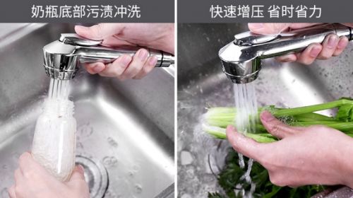 除此以外,卡贝还提供了专门的增压龙头款供用户选择,只需按下背后的增压键,就能带来澎湃的动力,极速水流帮你快速洗刷污渍,非常适合用来清洗容器和食材。