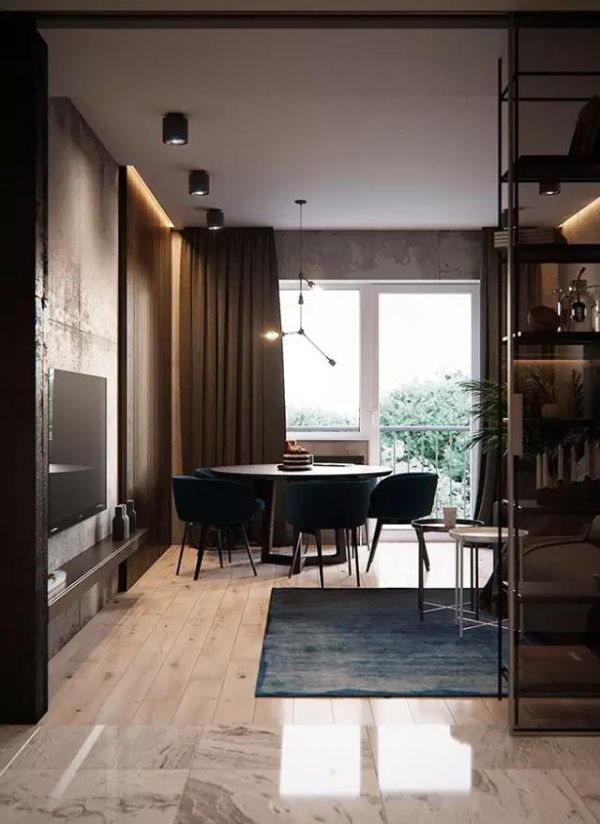 深棕色窗帘将低调的气质与质朴无华的质感展现无遗,置于都市之下,感受理性与温情的碰撞。用这抹色彩来装饰空间,仿若将一切喧嚣归于静止,将优雅历经沉淀。