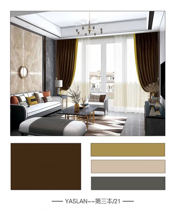 YASLAN深棕窗帘强烈的穿透力将视线紧紧凝聚,令优雅的气质更为凸显。