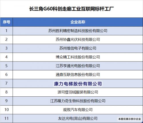 苏州作为其中的重要节点、制造业大市,也积极抢抓发展机遇,打响“工业互联网看苏州”品牌。日前,康力电梯携手波司登、亨通光电、胜利精密、通鼎互联等来自苏州的行业龙头上市公司,共同入选“长三角G60科创走廊工业互联网标杆工厂”。