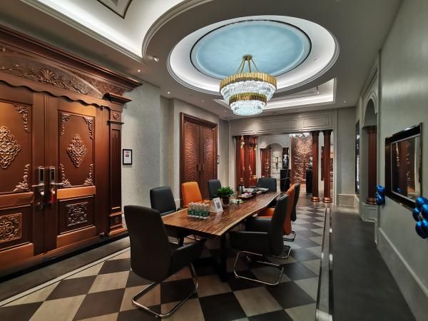 在市场推广方面,集团斥资2000多万元、面积超过2000平方米、装修耗时一年多的艺术馆已于2019年8月建成。该艺术馆分为三层,陈列了近200栋全新包含铜门、防爆装甲门、中式韩式日式等个性化系列不锈钢门。艺术馆环境舒适,设有接待区、洽谈区、体验区等多功能全景体验模式,堪称入户门行业的展览馆,大大增强推广成效!