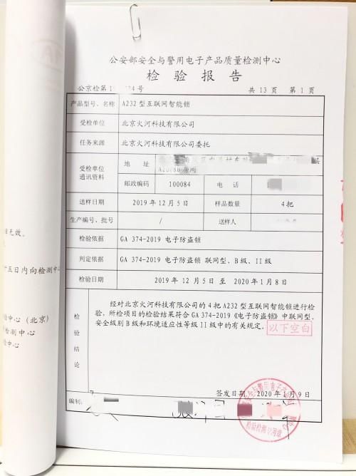 众所周知,涉及安全的认证都是由公安部门起草,近几年智能门锁产品成井喷式爆发,让公安部和相关职能部门耗费了相当多的精力,从制定标准到安全检测、产品认证等都做了大量工作。火河NB-IoT智能锁便是通过公安部制定颁布的最新版GA374《电子防盗锁》行业标准。