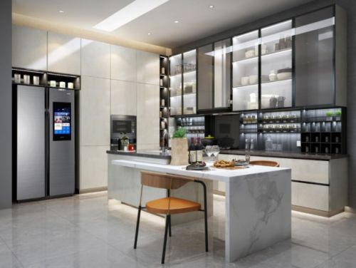 在厨房空间,通过抑菌台面及智能橱柜的应用,以及当下前沿的光触媒、循环立体风道等除菌技术,可实现消除大肠杆菌96%以上、消除三甲胺96%以上,杀菌、除臭的效果领先于同类产品,并引入涡流动态杀菌,抑菌防霉,让厨房实现“智能保鲜”。
