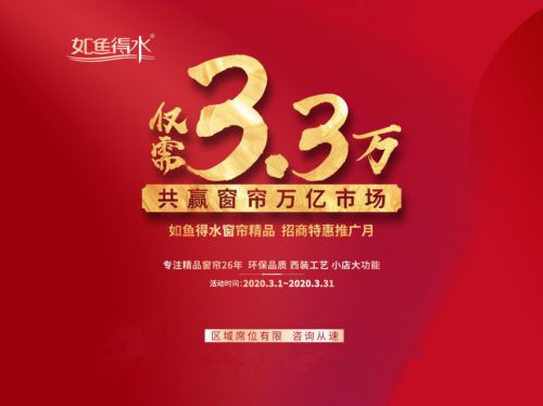 重大新闻!2020年3月1日起,专注精品窗帘26年,环保品质、西装工艺,中国窗帘行业标杆品牌——如鱼得水窗帘精品《招商特惠推广月》全新招商政策郑重公布:除了专卖店,专区店、专架店、专柜店“三专”形式全面放开,仅需3.3万即可投资,颠覆历史!
