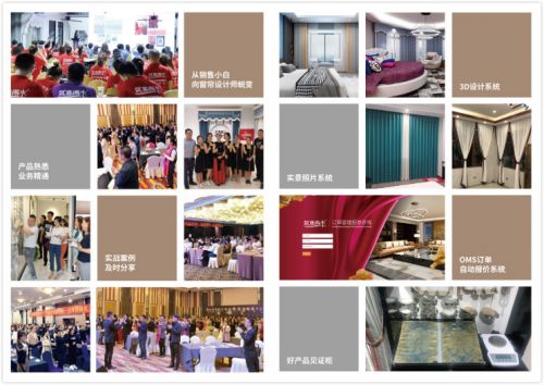 强大营销团队,1年365天指导。60多位精英战狼,诚信,专业,担当,一心一意做窗帘,全心全意做服务。高频提供月度主题活动、年度5大活动等活动支持,定期让利促销产品;全国联动、工厂线上直播、微信团购等多方面支持。一个靠谱的厂家,让你的每一个关键动作都有结果!