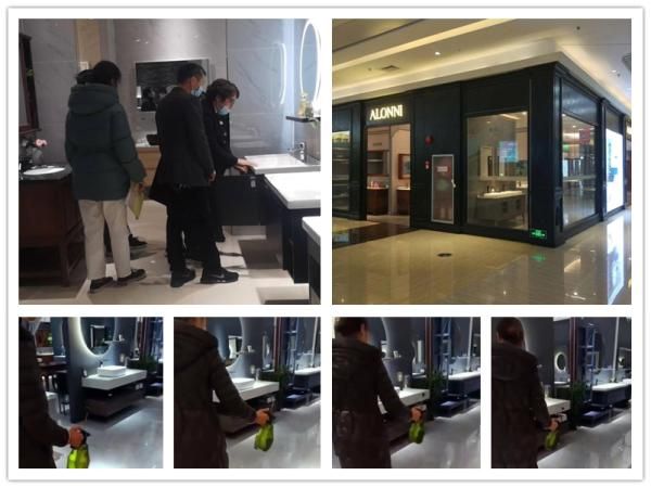 自2月24日起,阿洛尼浴室柜采取分期分批复工,组织员工安全有序返岗,对办公区域定时进行全面消毒,为员工发放口罩、测量体温等。至3月9日,阿洛尼浴室柜将全面复工复产。与此同时,阿洛尼浴室柜全国专卖店陆续开业复工。