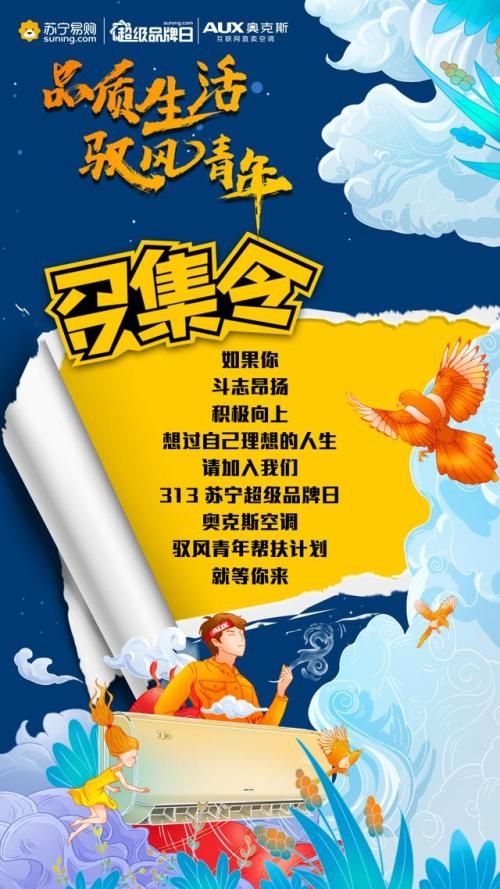 奥克斯空调联合苏宁超品日这就来了一波有号召、有话题、有互动、有讨论的"驭风青年"召集计划!