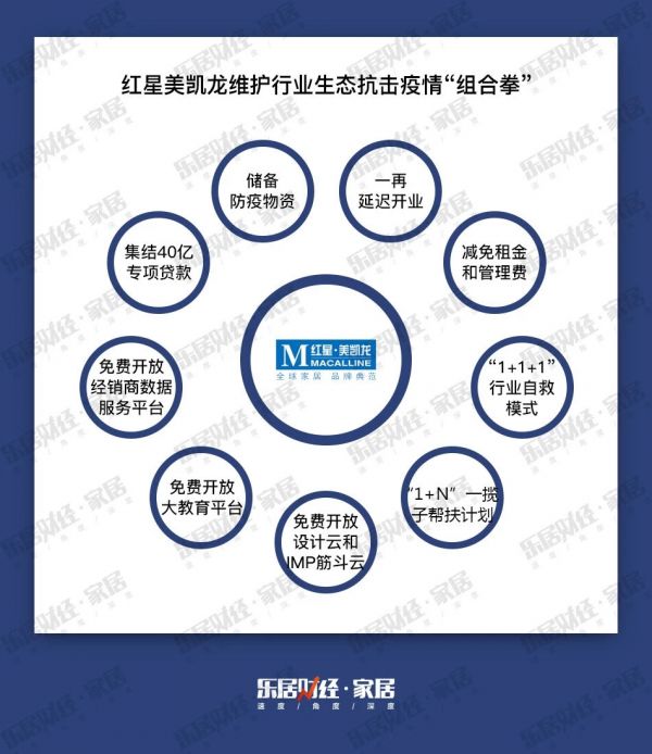 目前,红星在行业内率先提出“1+1+1”的行业自救模式,即通过卖场、工厂、经销商三厂合一的模式,赢得三个月左右的时间,用时间换空间。另外还推出了“1+N一揽子帮扶计划”,1是一个月的租金以及管理费,N包括已经免费对经销商开放的设计云、IMP筋斗云,大教育平台也将免费开放两个月。
