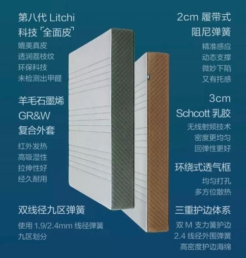 8H目前已经先后推出众多具有高科技感的热销床垫,小米有品近日发布的年度旗舰床垫8H九分区乳胶弹簧床垫 T6(石墨烯版),不少米粉被这款床垫的外观颜值吸引 。虽然床垫是非常传统的行业,弹簧床垫的出现也有百年历史了,但一款床垫拿下多项中国实用技术型专利也是很吸睛。因为每一个专利的申请都要经过国家严格的审核流程证明涉及的功能效果是真实有效。