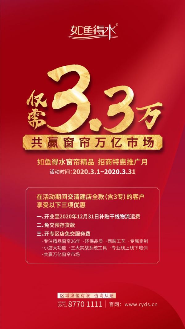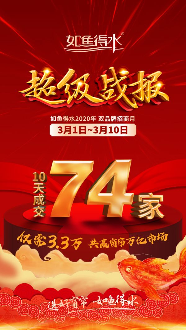热烈祝贺如鱼得水&溢彩双品牌招商月,2020年3月1日至3月10日,十天招商️️74家!