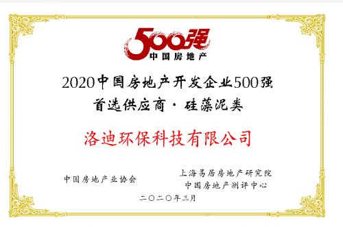 洛迪科技 | 2020中国房地产开发企业500强首选供应商·硅藻泥类品牌