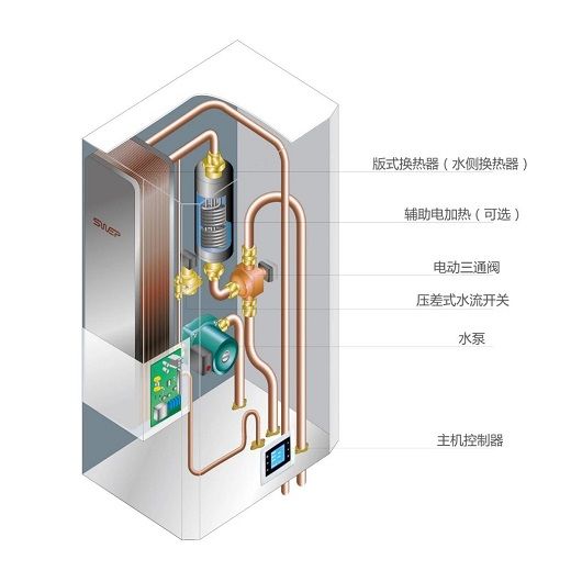 水流开关:压差式水流开关,进出水管的压力差大于设定值,水流开关通过信号线发指令给主板,启动机组,压差式水流开关是目前最先进的水流开关,主要作用是保护机组的板式换热器不被冻裂