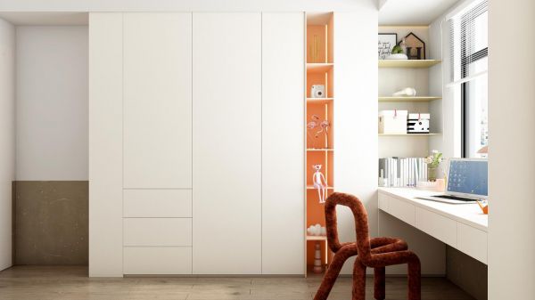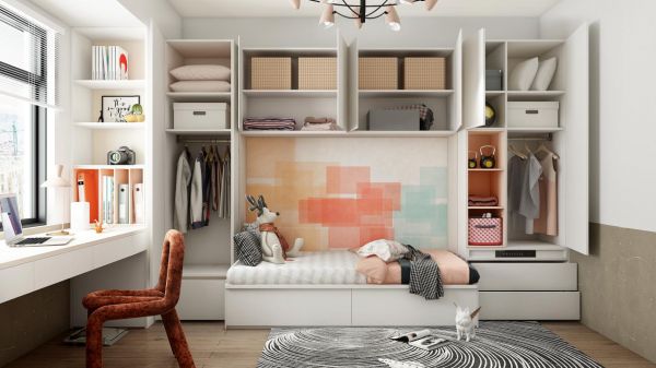 原态百变多功能房的收纳区域集齐了巧思。高处的超大收纳空间可以存储行李箱等不常用的大件物品,让实用面积暴增5平方米;此外,精心设计的多个精细收纳分区,让衣物、配饰、鞋子等物品都可以进行整洁有序的归置。收纳区还暗藏玄机,折叠床可以直接满足临时的休息;床底的隐藏式收纳柜又节省了至少2平方米的收纳面积。