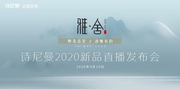 4月10日,诗尼曼即将举办主题为“雅·舍”的2020新品直播发布会,正式发布全屋定制新品“雅舍”系列、轻奢系列掩门和轻奢·净享门。