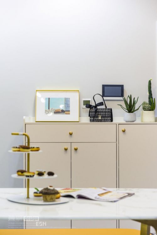 一进门,便是玄关,它充当了“情感过渡”的角色,翼森的软装设计师在玄关处放置了玄关柜,方便一进门放置手中重物,让人尽快回归到家的轻松氛围中。通过简单陈设,实现了物品的收纳。