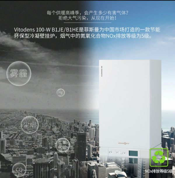 结合中国的天气环境,菲斯曼也研发出符合中国家庭的节能环保型冷凝壁挂炉,烟气中的NOx排放等级为5级,为最高级(根据我国2010《燃气采暖热水炉》标准,氮氧化物(NOX)污染物分为5个等级)。