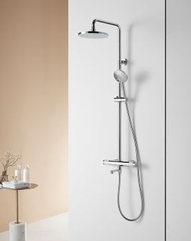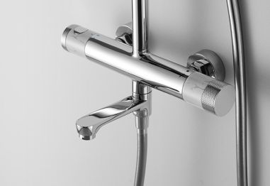 爵士系列N3SH689三功能恒温明杆花洒,整体采用几何形及防石纹理的点缀赋予其自然舒适之感,带防滑纹理的把手设计表现出更友好的操控性。