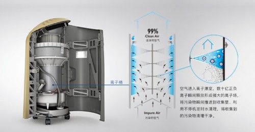 根据芬兰坦佩雷理工大学教授GunnarGroffe的测量,这些释放的负离子速度为1千米/秒-1.2千米/秒。高速离子形成离子瀑直射离子筒收集面,当污染空气通过该区域时,空气中污染颗粒物被强大离子瀑推到收集面上,被收集的颗粒物粒径从0.001微米(纳米级颗粒)开始,包括粒径大约为 0.02-0.3微米的各种病毒。这些纳米级细菌、病毒等微生物进入离子瀑室后,在强离子场作用下,被推到收集壁上,在推送过程中,微生物被破坏致死。