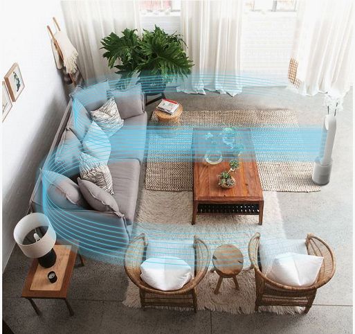科西A1无叶风扇底座引擎生风,风进入狭长风道之中,运用Coanda Effect效应,紊流风在风道中不断揉匀成自然风。等长风道使得出风可以大面积覆盖身体,置身其中,有种被风包围的感觉。