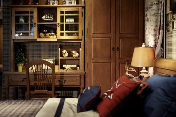 泰国进口橡胶实木独具天然木质厚实感,深色系造就复古的独特气质,搭配粉色的壁灯和印花丝绒窗帘,如此精致的复古氛围简直让人陶醉不已。