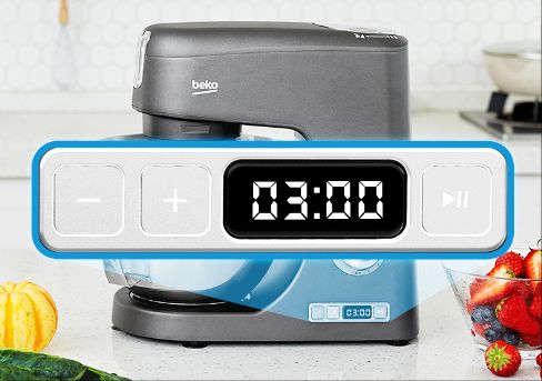 不得不夸一嘴的是它的智能定时功能。烘焙小白们莽莽撞撞,总会有疏忽的时候,Beko倍科的设计师就很贴心了,为防止揉面过度断筋、黄油搅拌过度等情况的发生,特意设置了智能定时功能,一键设置,无需看管。
