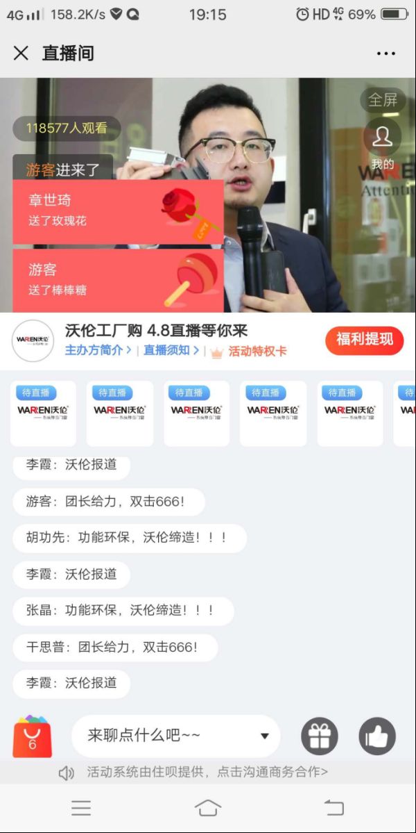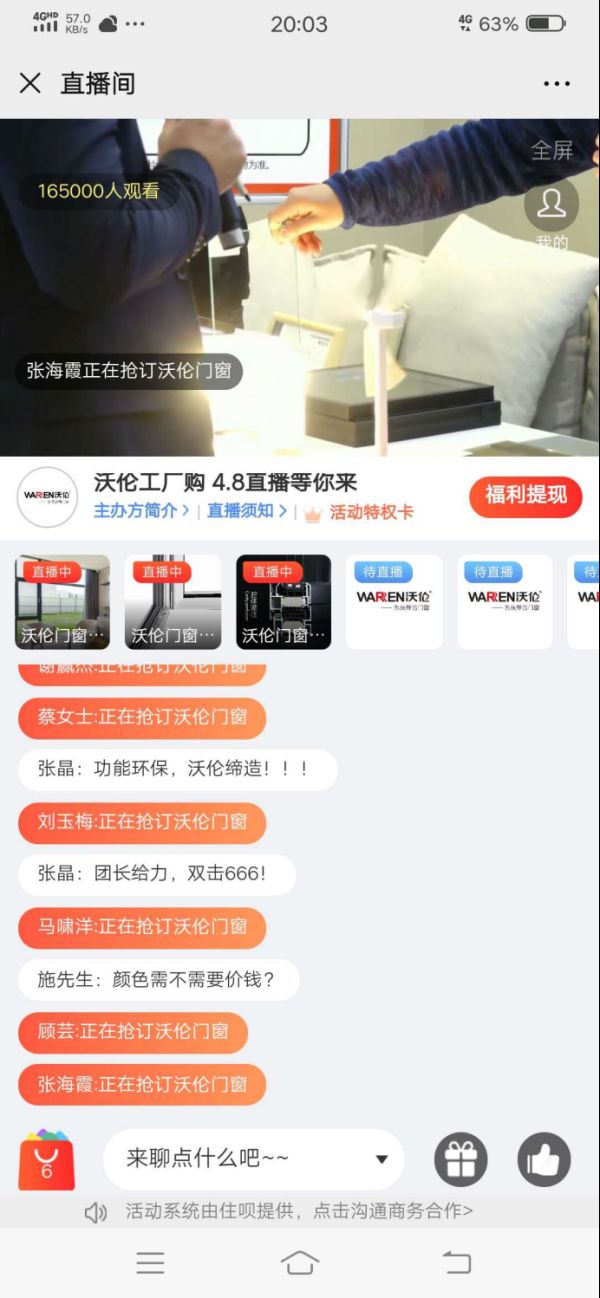 直播现场,家居达人和业内人士将抽象的产品卖点转化为消费者易于理解的生动讲解,细致演示沃伦系统窗所营造的独有温馨场景,还原沃伦所传达的生活方式,为消费者带来身临其境的感观体验。同时也以前所未有的让利放价点燃了消费者的下单热情,直播间互动踊跃,频频爆单。