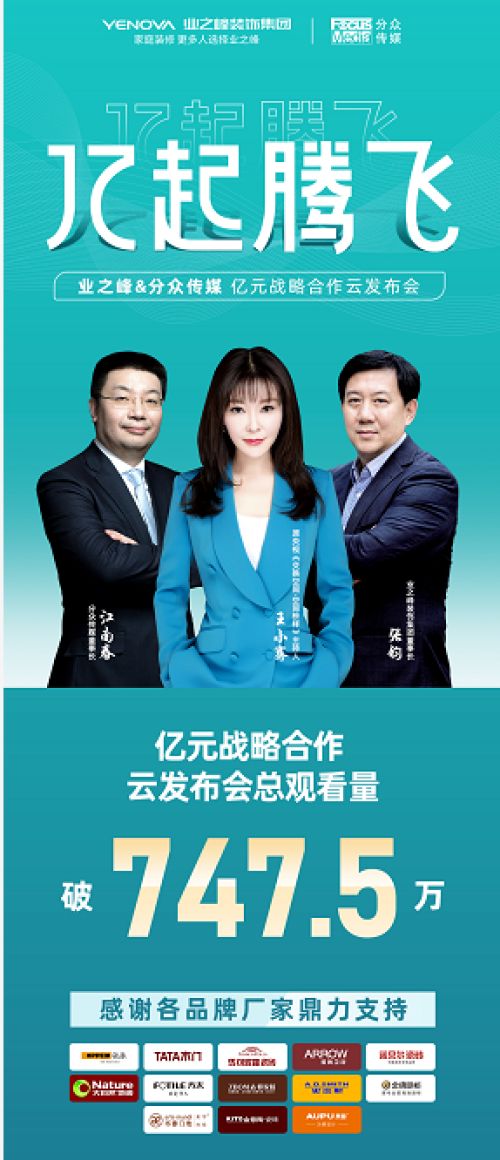 继“2·21”和“3·15”两场大型直播活动之后,4月11日,张钧再次直播带货,举行“亿起腾飞——业之峰amp;分众传媒战略合作云发布会”大型直播活动,总观看量突破了747.5万。