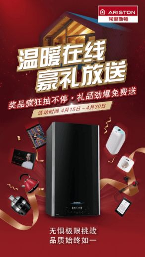 阿里斯顿中央采暖系统和壁挂炉产品,都是为每个家庭“量身”定制。参与活动的用户,5月31日前,前往全国阿里斯顿壁挂炉授权门店(四川除外),阿里斯顿采暖专家将会为您定制系统方案,并安排采暖系统或壁挂炉产品尾款的支付。抽中的奖品,也将随后寄送到您的家中。若在活动期间内未完成线下门店购买流程和尾款支付,定金可在京东平台申请退款,抽中礼品将视为放弃。