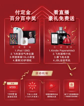 既能轻轻松松完成家中“采暖大业”,又有额外大礼拿到手软,这样的美事岂能错过! 4月15日至月30日期间,在阿里斯顿京东旗舰店https://item.jd.com/67431952912.html支付199元定金即可100%中奖。iPad 128G、飞利浦净化器、阿里斯顿10L小厨宝、慕思3D护颈枕任性中!其中,4月15日0:00至4月29日24:00下定金,在抽奖盛典直播现场参与大屏滚动抽奖;4月30日0:00至21:00下定金,在抽奖盛典直播现场参与砸金蛋抽奖。线上支付的199元定金,可直接抵扣购买阿里斯顿采暖系统或壁挂炉产品的货款,一个京东账号参与一次抽奖。