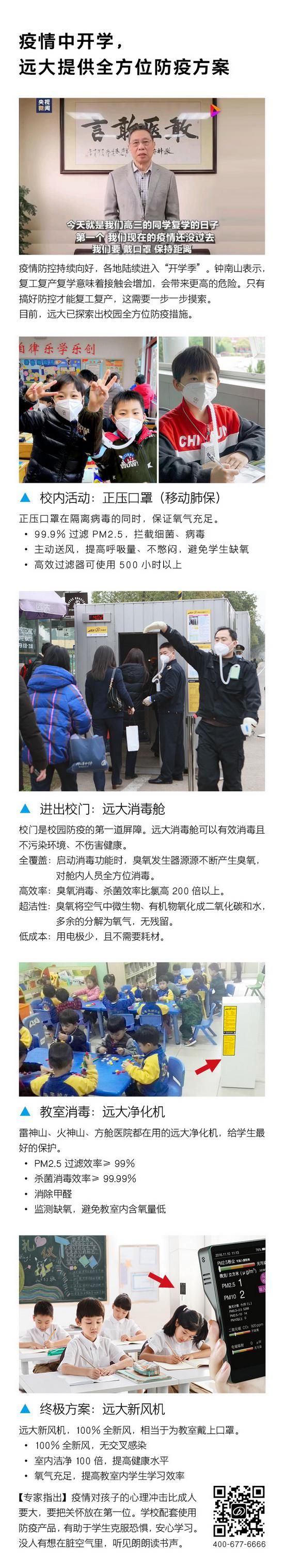 疫情中开学 远大提供全方位防疫方案