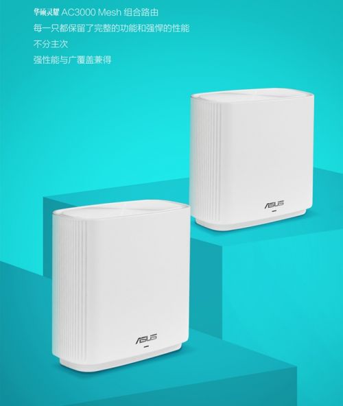 华硕灵耀AC3000,采用相同硬件设计,两台可智联组成Mesh网络,即便是小白用户也可以轻松搭建网络。