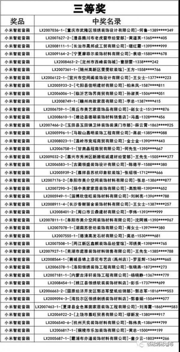 【领绣】恭喜您中大奖了 56位业主中奖名单公布 快进来看