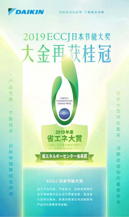 ECCJ日本节能大奖公布,大金第19次再夺桂冠!