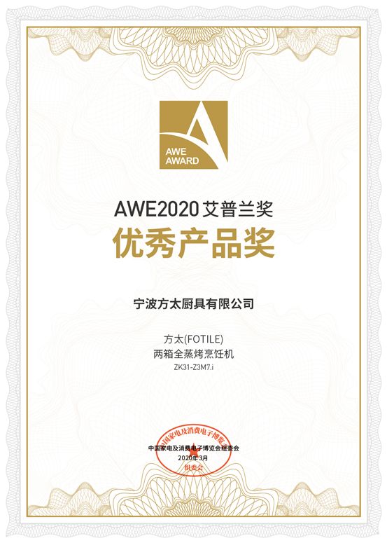 本次AWE2020艾普兰奖汇聚了全球年度家电及消费电子领域最顶尖的科技水平和最时尚的产品设计,在新冠疫情的大背景下,依然充分体现了人们对品质生活的追求、对健康的渴望、对环保的重视,以及对智能化产品的期待。作为高端厨电的头部企业,方太坚持“专业化、高端化、精品化”的战略定位,结合新变化,拥抱新趋势。以创新发明为力量之源,推动中国家庭厨房生活的幸福升级。