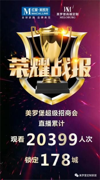 据统计,截至4月19日20:30分。本次美罗堡2020线上首场超级招商会在线人次突破2万人次。有近178家有意向的客户成功缴纳了加盟意向金,加盟数量在线上首创新高。美罗堡品牌将以高颜值、高服务、高的性价比继续引领中国全屋高端定制行业。