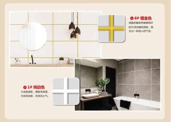 产品柔韧坚固,无惧刮擦,耐沾污易清洁等优点,有效解决室内墙地面瓷砖缝隙长霉变黑、难以清洁的难题。