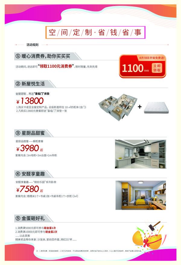 健康礼壕送。消费满¥5000参与砸金蛋1次,满¥10000砸金蛋2次……精美奖品包括多功能沙发床、时尚家纺四件套、网红55°杯等。