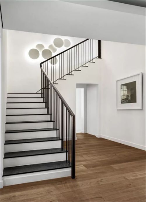 4、一般来说,我们都会把楼梯设计到一个专门的楼梯间,靠墙的地方这样还不会浪费多余的空间,也不会破坏整体设计。